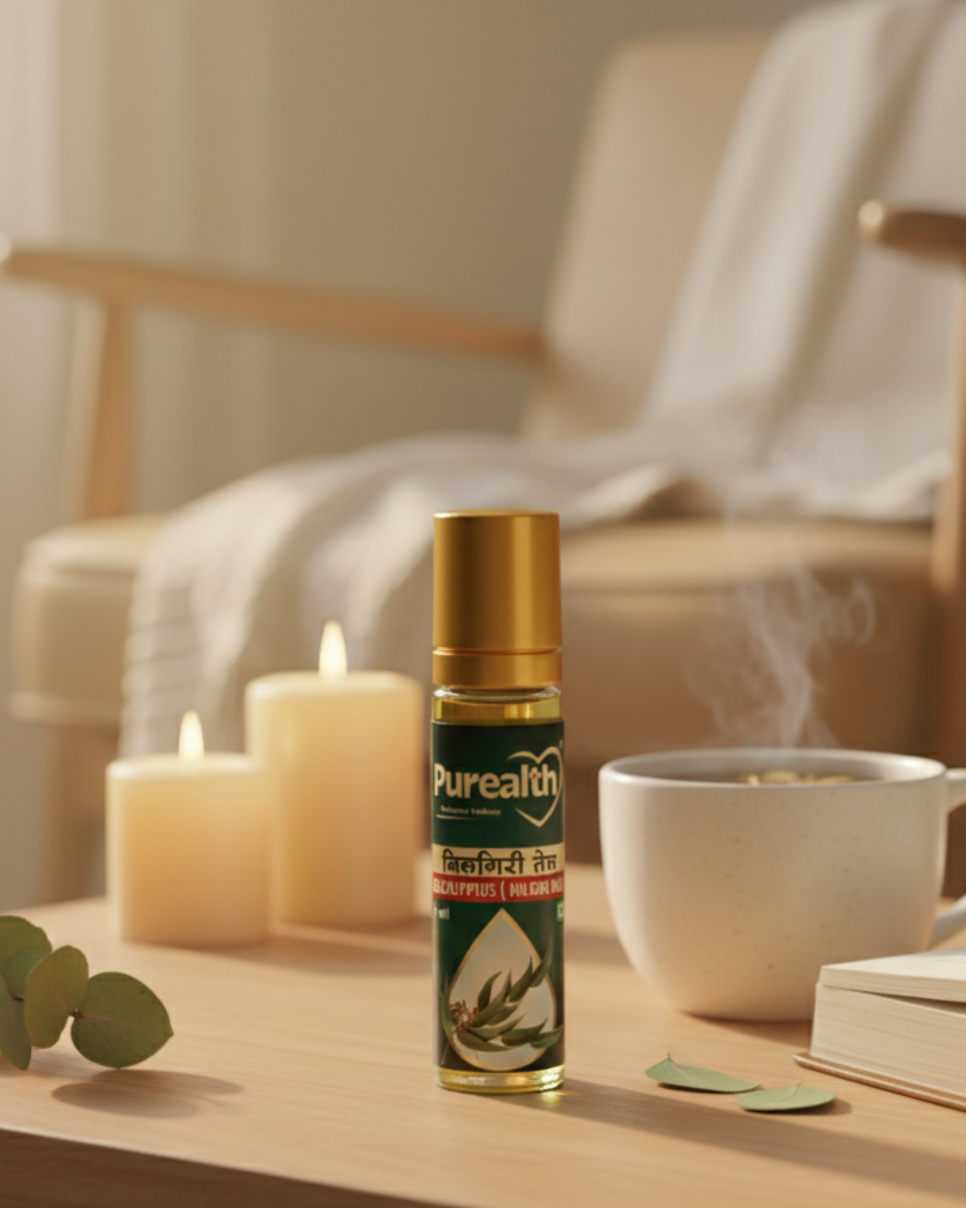 Known for centuries in Ayurveda as "Nilgiri ka tel," this versatile oil is a must-have for every home. Its invigorating, camphoraceous aroma instantly uplifts your senses and promotes a sense of clarity. Whether you're seeking relief from seasonal discomfort, a natural solution for joint pain, or an aromatic escape from daily stress, Purealth Eucalyptus Oil is your answer.